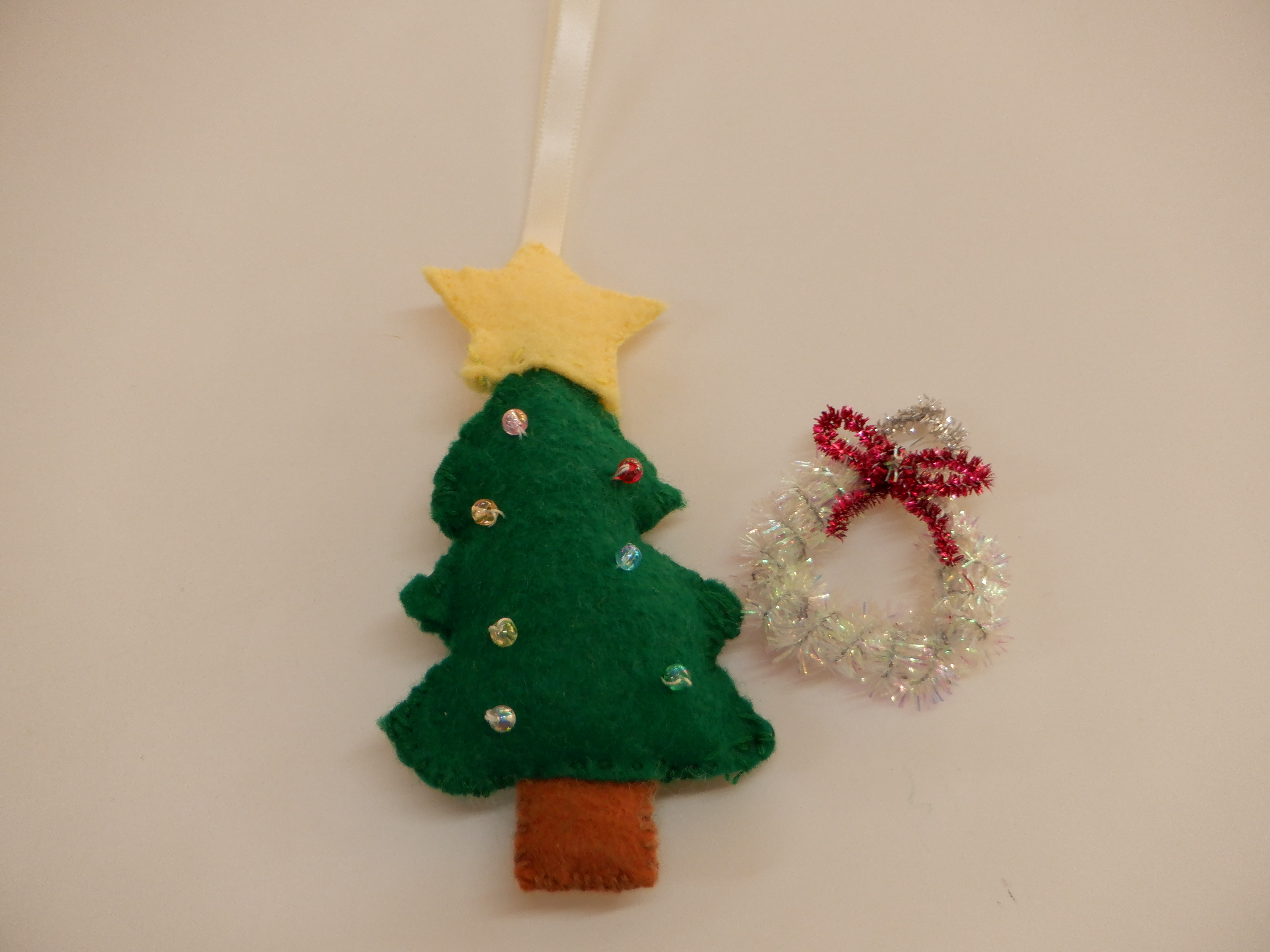 フェルトで小さなクリスマスツリーを、前回と今回の2回で完成させることを目標に作りました。