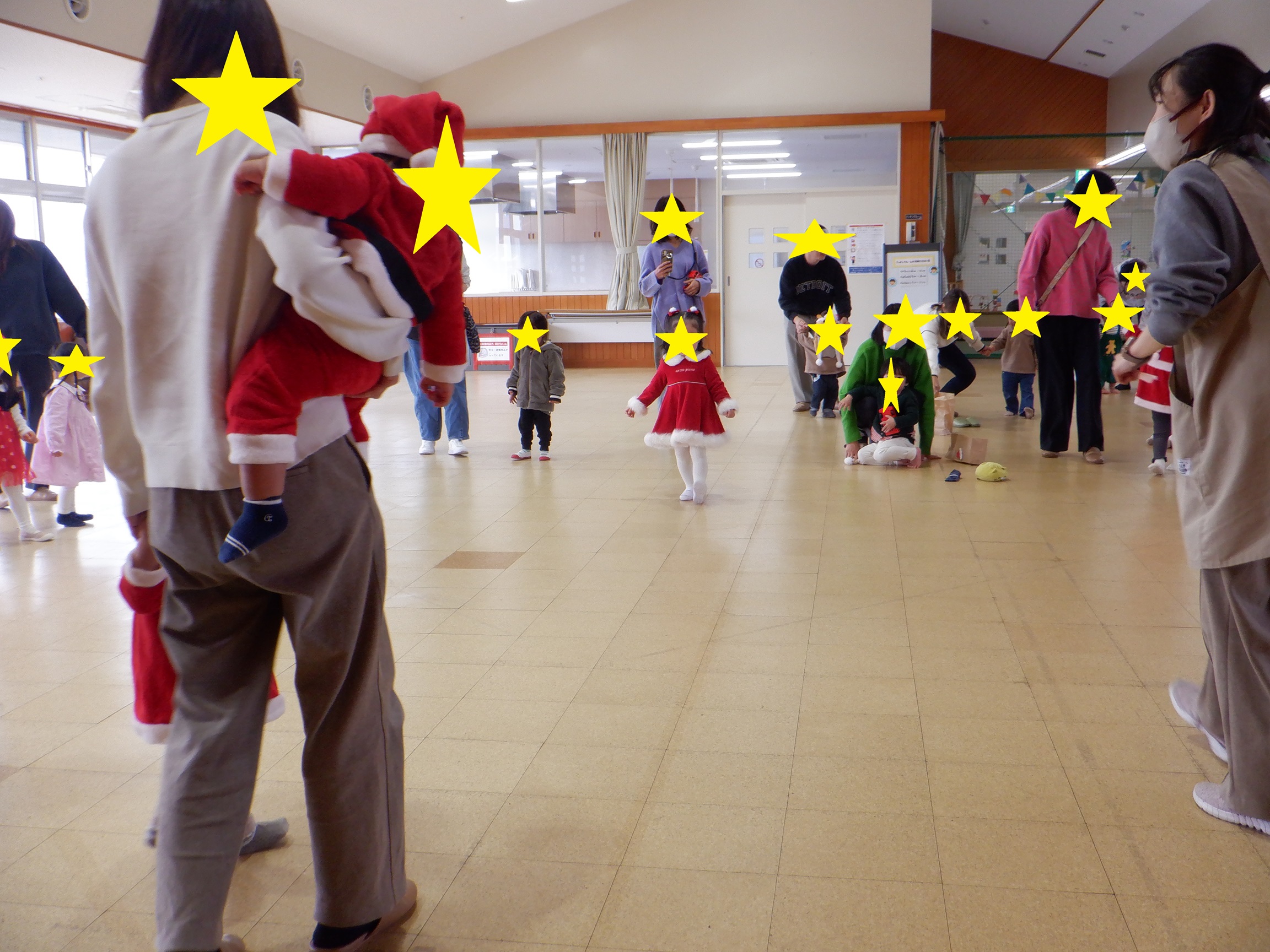 12月のあそび広場はクリスマス会をして、クリスマスの雰囲気を楽しみました。