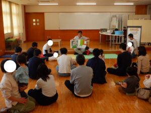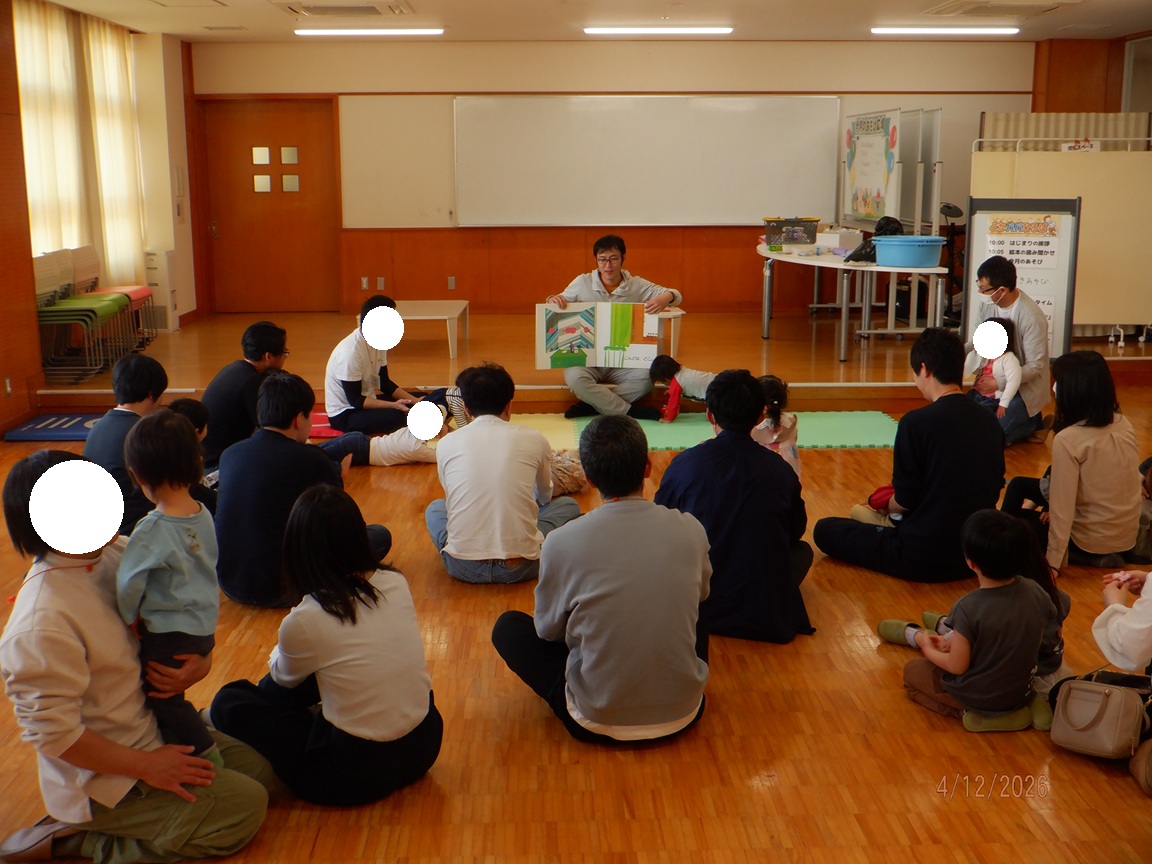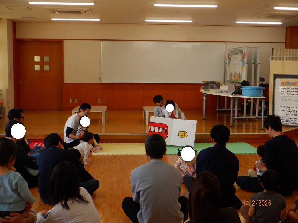 今月の読み聞かせ絵本は、よかパパ相談員さんによる「おべんとうバス」「きんぎょがにげた」でした。