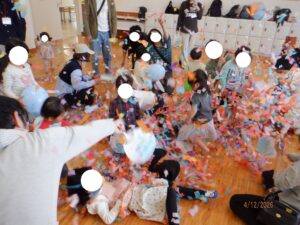 その後は、紙吹雪あそびや「紙吹雪クラッカー」を作りながら、おしゃべりタイム♪