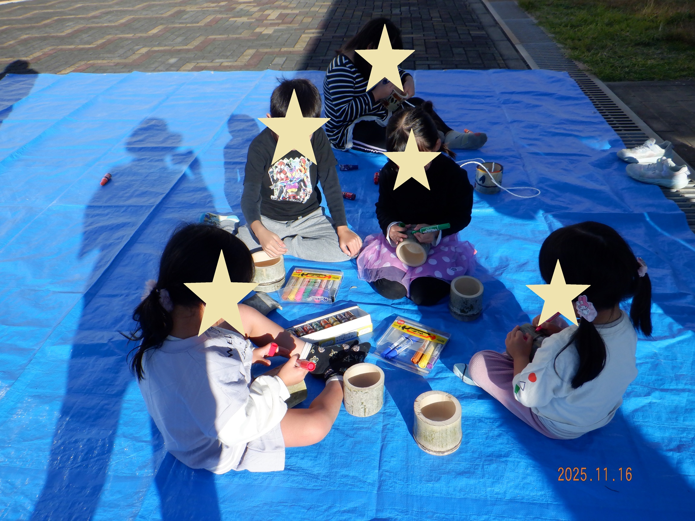 自分に合った大きさの竹を選んで、竹ぽっくりに絵を描いていきます。最後に紐を通して完成!