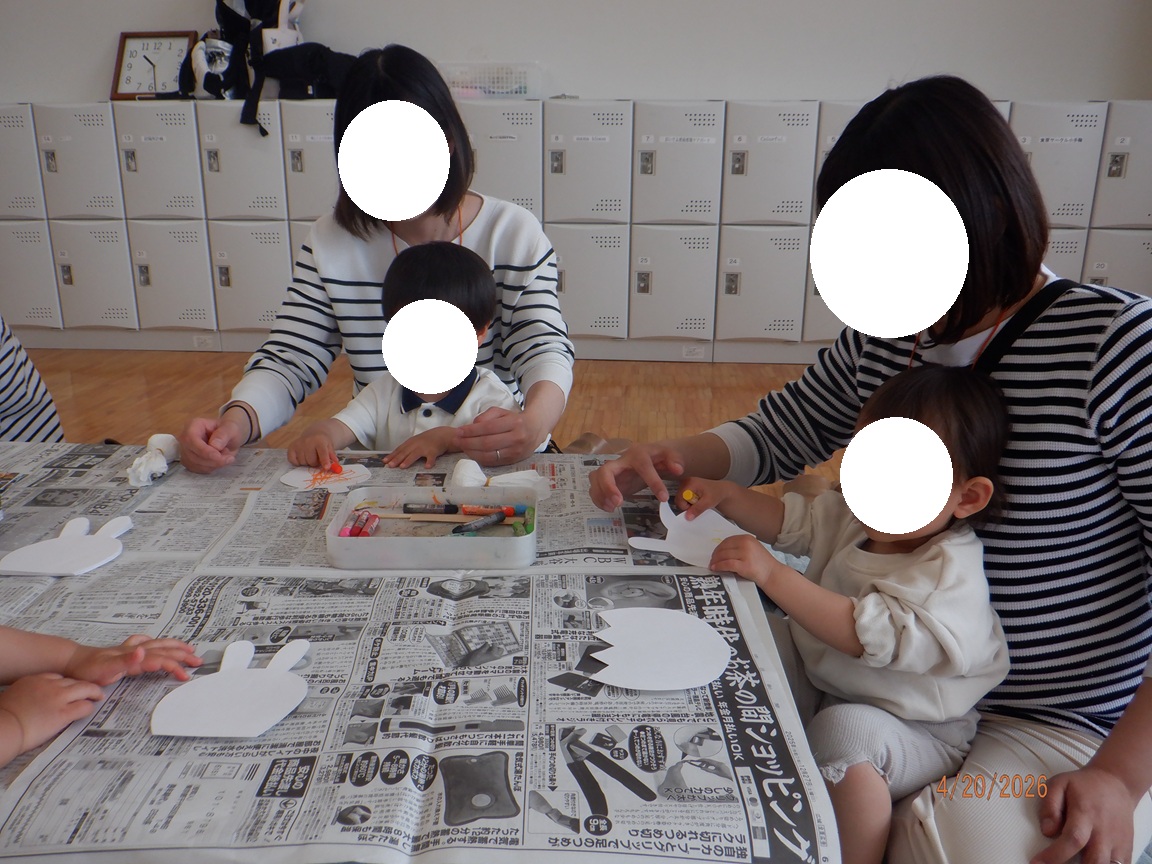 今年度からリニューアルした初めての“わくわく広場” 3週目の月曜日は「ポンポンうさぎアート」です☆