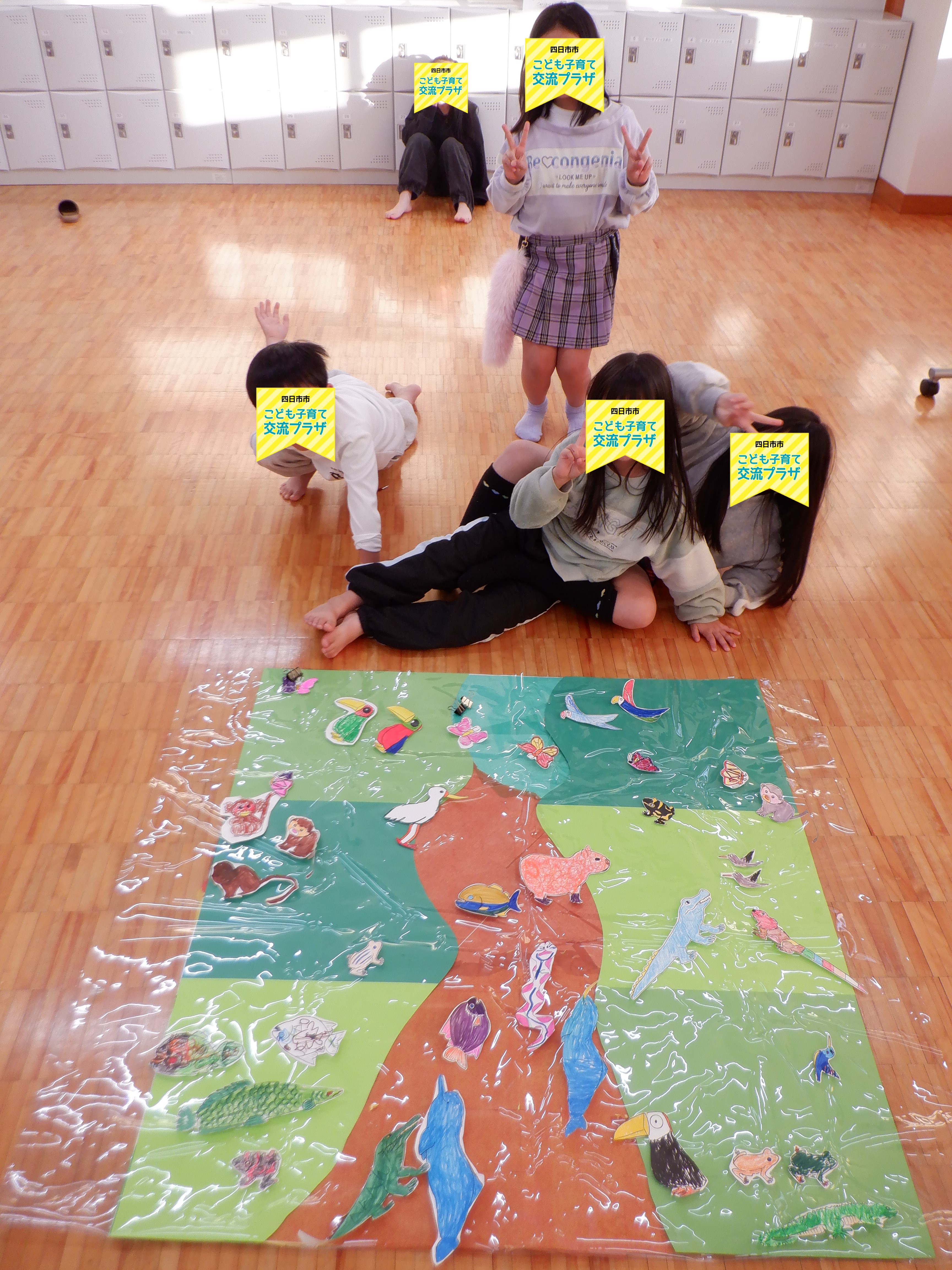 2つ目は、図書「アマゾン川」を舞台に、色とりどりの動物たちをみんなで作りました。