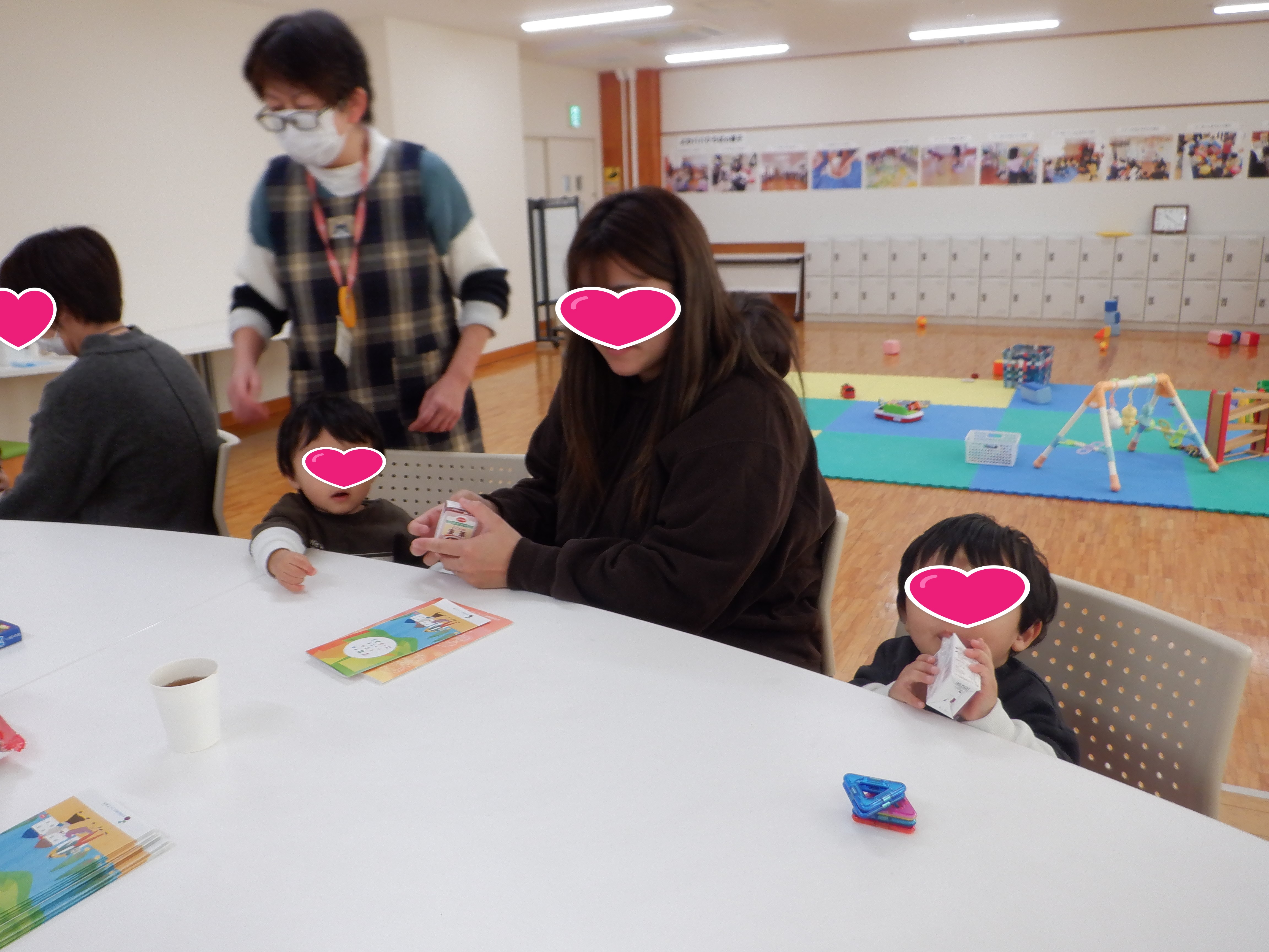 保護者、地域の人、みんなで交流するなかよし広場。 今月は生活協同組合コープみえにご協力いただき お茶やお菓子を食べながら、会話を楽しみました。