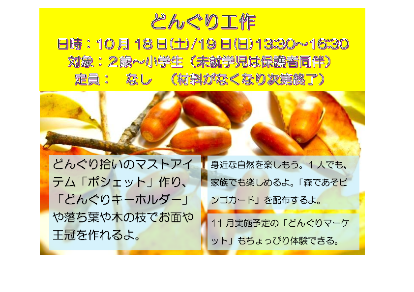【どんぐりイベント「ボランティア募集」のお知らせ】