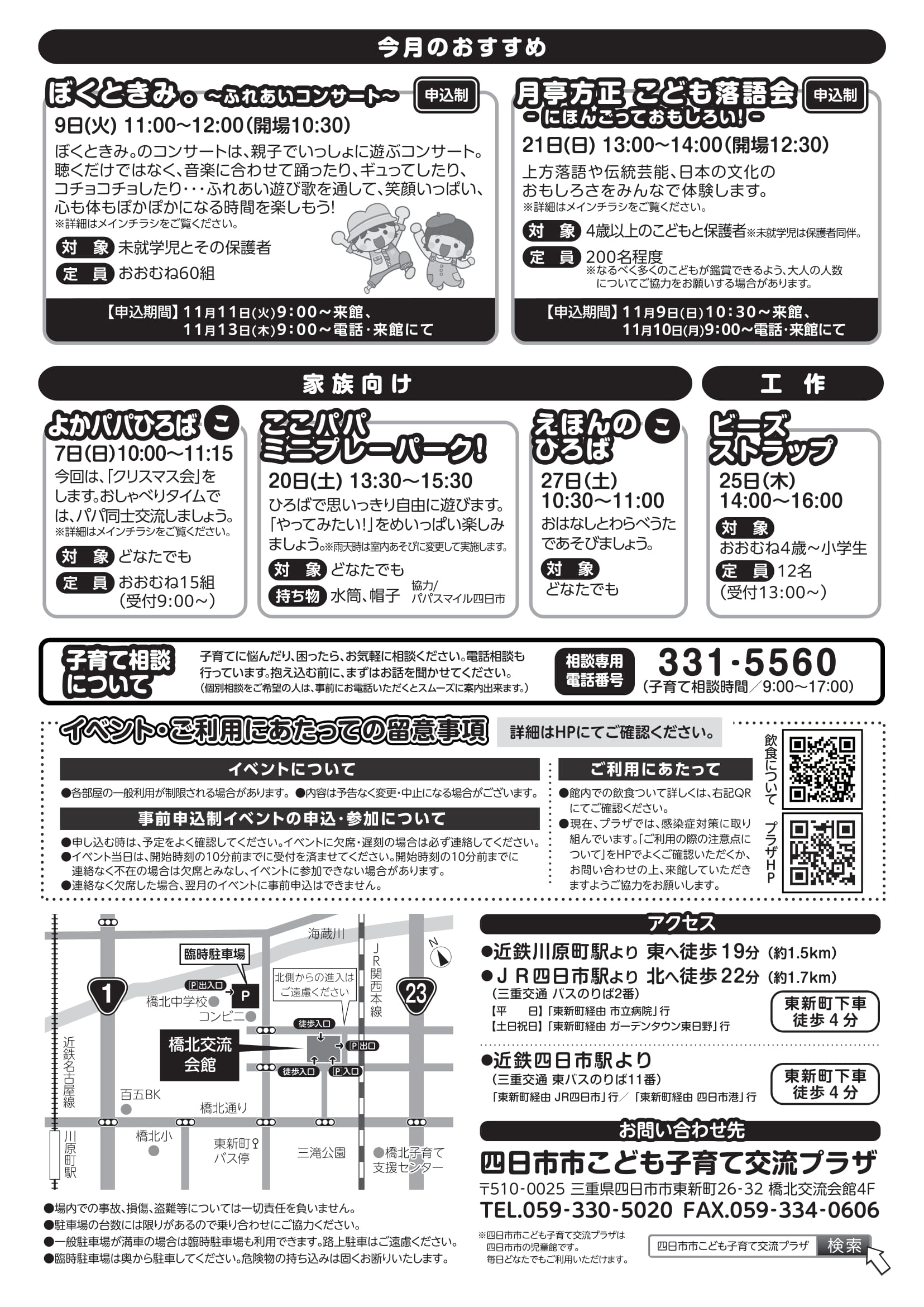 申込希望の人は、それぞれの時間・内容を確認のうえお申し込みください。