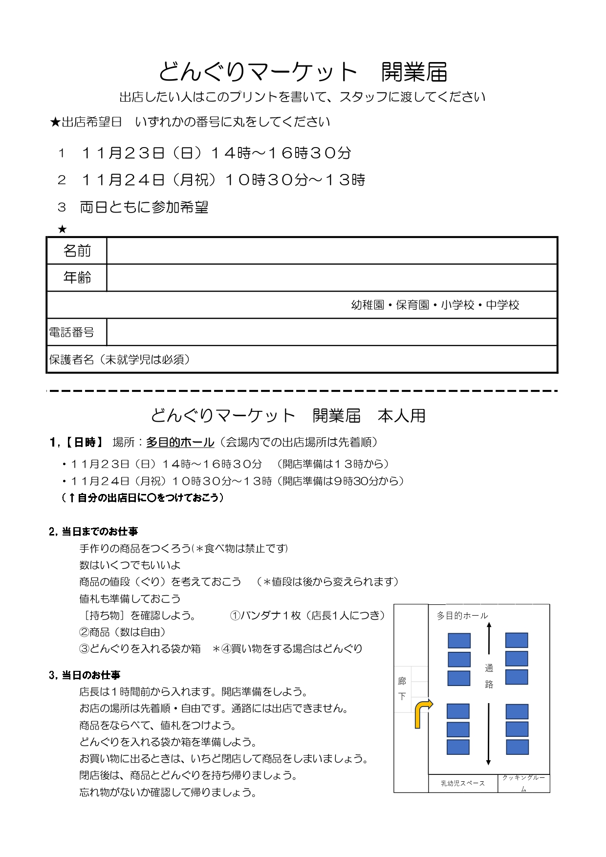🍁🌰「どんぐりマーケット」のお知らせ〜こども店長を大募集〜🌰🍁